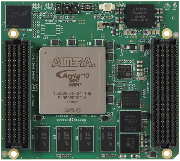 Achilles Arria® 10 SoC System-on-Module — это высокопроизводительный модуль, основанный на Intel Arria 10 SoC. Он сочетает в себе гибкость и лёгкость программирования двухъядерного процессора ARM Cortex-A9 и мощностью обработки ПЛИС.